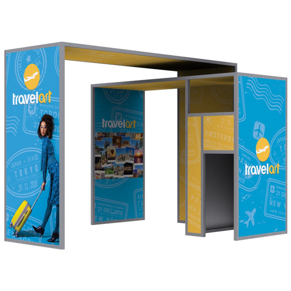 The Cabo aluminum extrusion profile system is an elegant and versatile solution for all of your display needs. Featuring a sleek silver anodized finish, the Cabo is the perfect solution for tradeshow booths, retail environments, pop up shops, or any place aluminum framing is needed. The profiles are available in standard 40mm and 80mm profile widths and in different shapes allowing you to turn your display vision into reality. Promote your company, new products, etc with custom dye sublimated fabric graphics. 12mm x 3mm silicone beading (SEG) is sewn around the perimeter of each fabric panel for easy installation and removal of your graphics.
